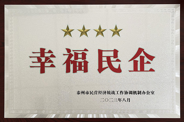 近年來,在市委市政府的堅強領導下,揚子凈化上下認真學習貫徹黨的二十大精神,深入推進社會主義核心價值體系建設,以“闖”的精神、“創”的勁頭、“干”的作風,圍繞中心發展大局,各項工作取得豐碩成果,展現了揚子凈化人新時代的奮勇前行的精神風貌。泰州市民營經濟統戰工作協調機制辦公室授予我單位泰州市四星級“幸福民企”榮譽稱號。