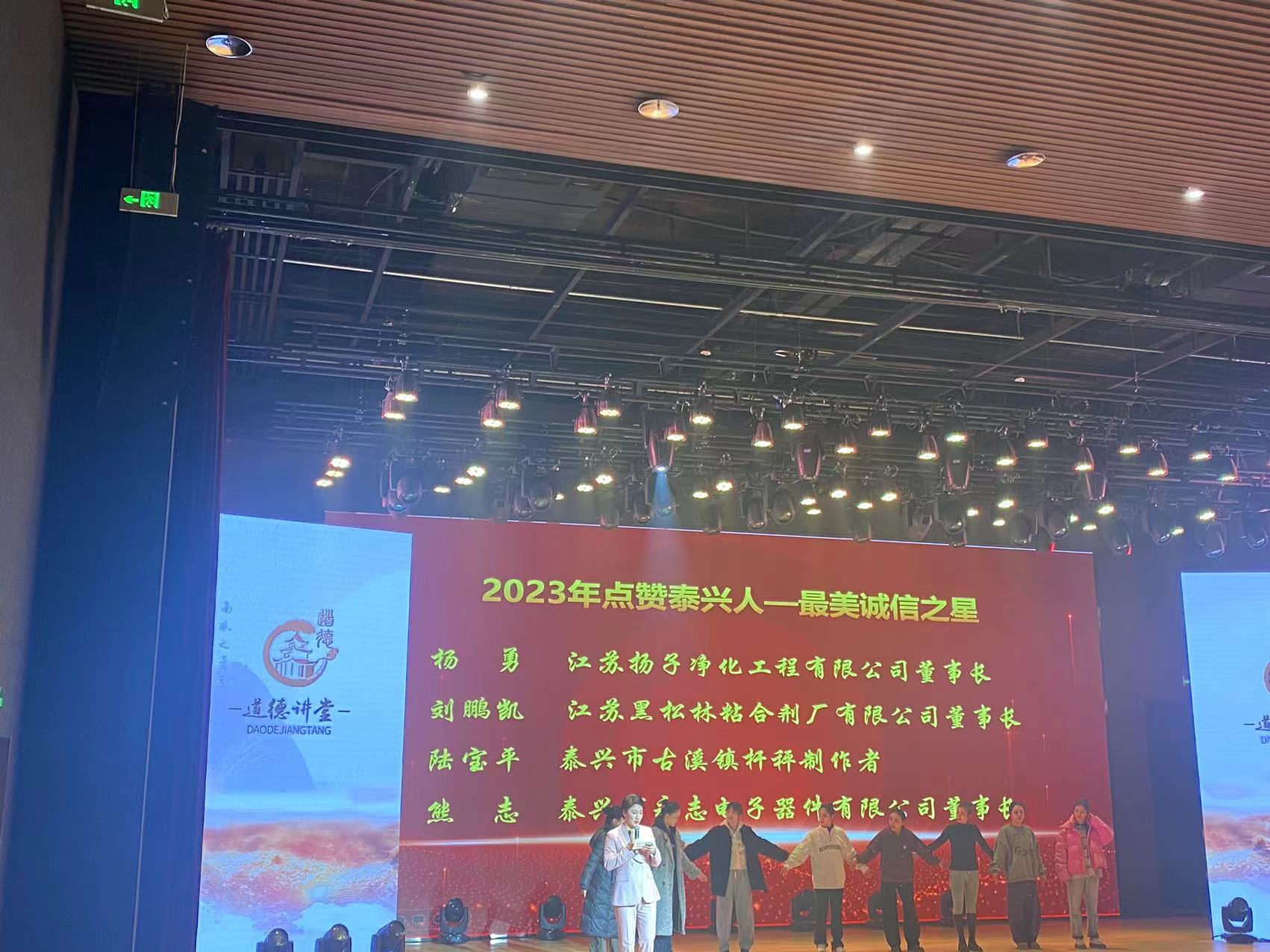 誠信是做人之本、立業之基,是社會有序運行、健康發展的重要基石。日前,泰興市委宣傳部、泰興市場監管局聯合開展2023年“點贊泰興人”活動。我單位董事長楊勇榮獲”最美誠信之星“榮譽稱號。